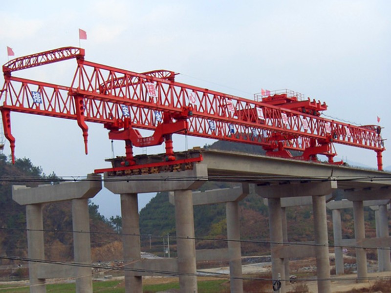架橋機就是將預(yù)制好的梁片放置到預(yù)制好的橋墩上去的設(shè)備。架橋機屬于起重機范疇,因為其主要功能是將梁片提起,然后運送到位置后放下。但其與一般意義上的起重機有很大的不同。其要求的條件苛刻,并且存在梁片上